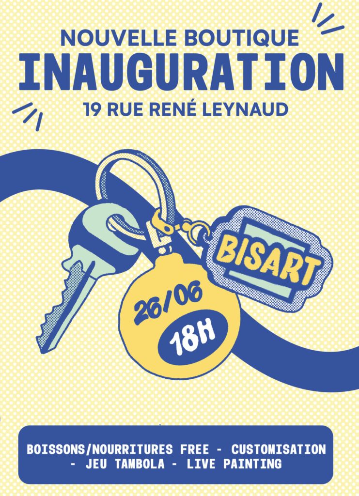 Bisart est une entreprise lyonnaise d’upcycling qui transforme des vêtements de seconde main en pièces uniques. En collaboration avec des artistes, la marque crée des patchs sérigraphiés à la main (limités à 300 exemplaires) cousus sur des vêtements vintage.
